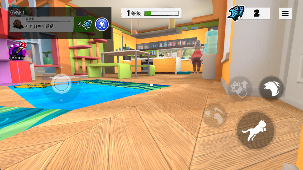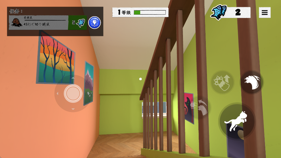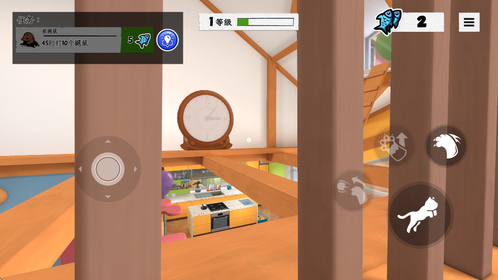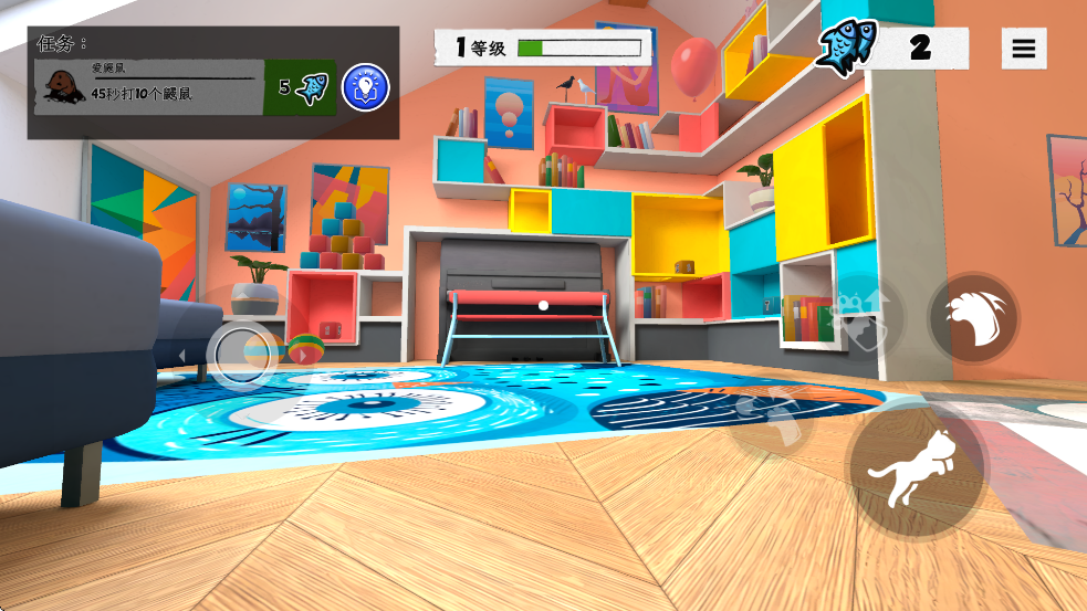 1、自由探索与互动:玩家可操控猫咪在客厅、书房等场景中自由穿梭,通过点击、滑动屏幕与物品互动(如打翻花瓶、抓挠沙发)。
