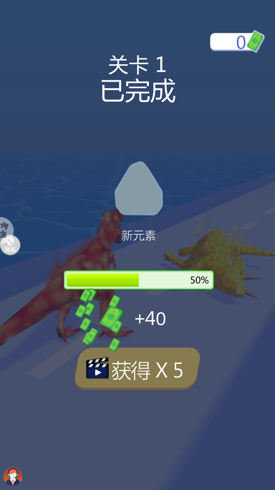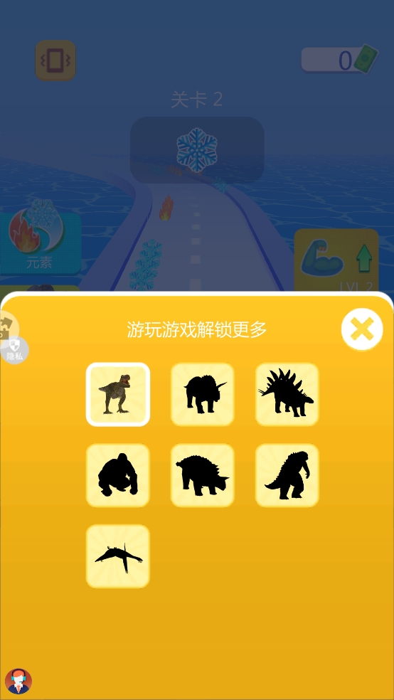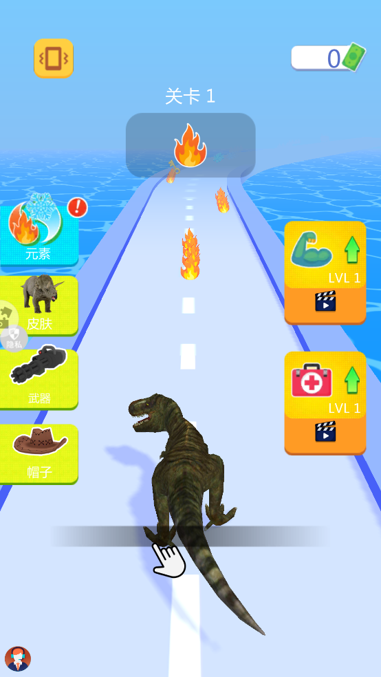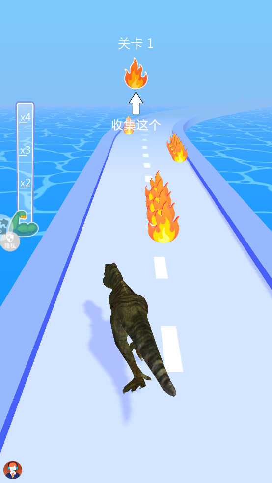 3、游戏以原始恐龙为主题,设计了多种形态各异的奇葩恐龙角色供玩家收集与操控,玩家需操控恐龙在跑酷赛道上前进。
