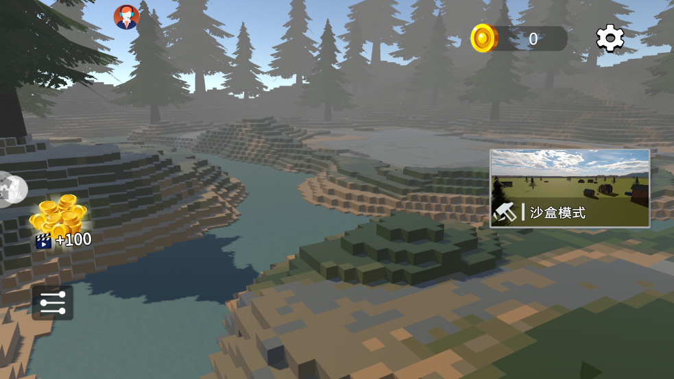 1、进入游戏,能看到像素风格的野外场景,可选择沙盒模式,开启在这个世界的。