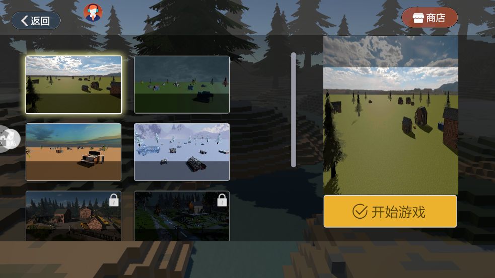 2、在场景选择界面,有多个不同像素场景可选,选好后点击开始游戏,进入所选场景展开冒险。