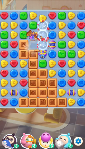 3、道具和障碍设计:炸弹、彩虹球这些道具让消除更有策略,木板、冰块等障碍也增加了挑战性。