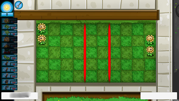 3、我们只能在己方地盘上种植植物和放置僵尸,首先当然是种植能产阳光的向日葵了。