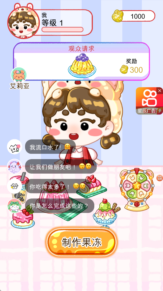 制作美食:点击“制作果冻”按钮,根据系统提供的材料与工具,自由搭配不同颜色、形状与口味的果冻,打造属于自己的独特甜品。