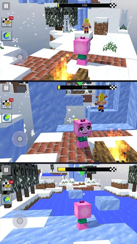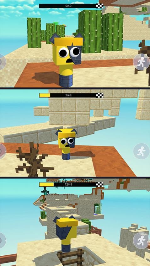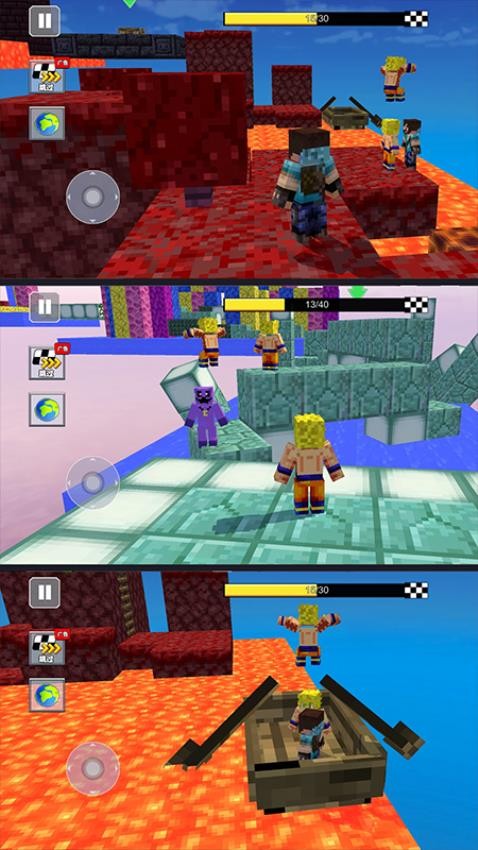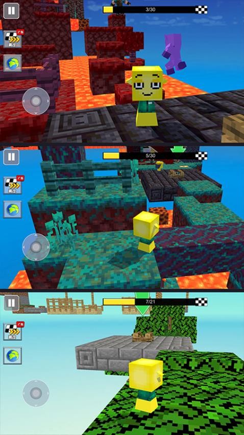 角色选择:开局选角色和关卡,每个角色有独特技能(如加速、跳跃强化),城堡、森林、沙漠等场景各有挑战。