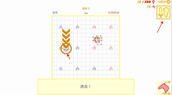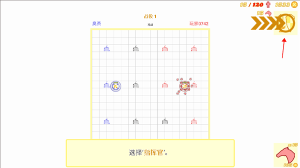 6、如果要想敌方进行进攻,需要先点击右上方的指挥官,再点击攻击目标位置,这样就可以直接进行攻击了。