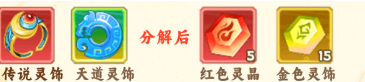 说明:不同级别的灵饰可以分解出不同等级的灵晶,神话灵饰可以分解出3个金色灵品,每有一颗星多分解出5个金色灵品