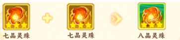 说明:1颗三星六品灵珠外加4颗六品灵珠可以合成1颗七品灵珠。七品及七品以上灵珠初始就是最高3星不需要单独升星。