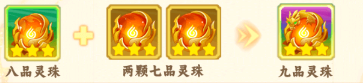说明:1颗八品灵珠加2颗七品灵珠可以合成1颗九品灵珠九品为高品级