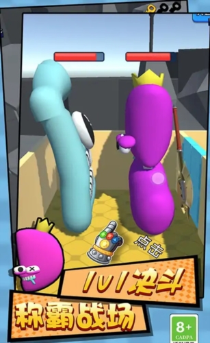 2、卡通橡皮人视觉风格:角色采用弹性橡胶质感的卡通设计,动作夸张流畅,配合物理反馈增强趣味性与视觉冲击力。