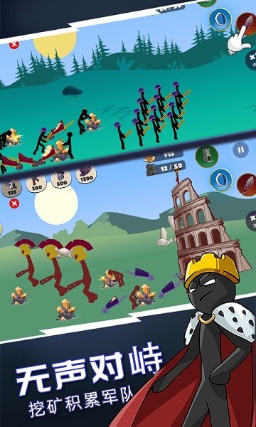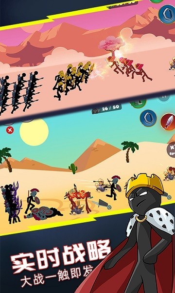 1、火柴人战争策略核心:以火柴人为主角,融合策略战争与即时战斗,你需要指挥不同兵种进行实时部署和资源管理。