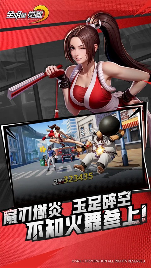 全明星觉醒是一款由腾讯推出、SNK正版授权的3D策略格斗卡牌手游,于2026年1月22日全平台上线,集结了《拳皇》《侍魂》《饿狼传说》等经典IP的50余位格斗家,如八神庵、草薙京、不知火舞、橘右京、娜可露露等,实现全明星破壁集结。游戏采用“1V1车轮战”对战机制,融合街机格斗的操作爽感与卡牌策略的深度博弈,还原“重拳、暴气、必杀、超必杀”的经典操作逻辑,同时通过Unity引擎打造可自由探索的3D“格斗之城”,让玩家在街道、酒吧、擂台等场景中沉浸互动。
