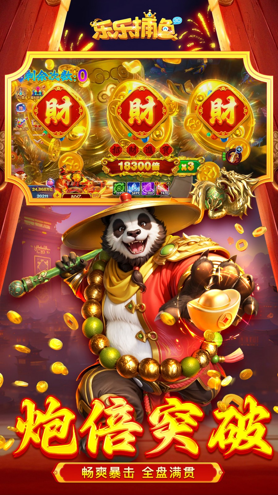 2、引入“无双关羽”“虎痴许褚”等创意BOSS鱼,以及“鸿运福神”“富贵吉祥兔”等高倍率领主鱼,最高倍率达17500倍,大幅提升捕获收益与刺激感。