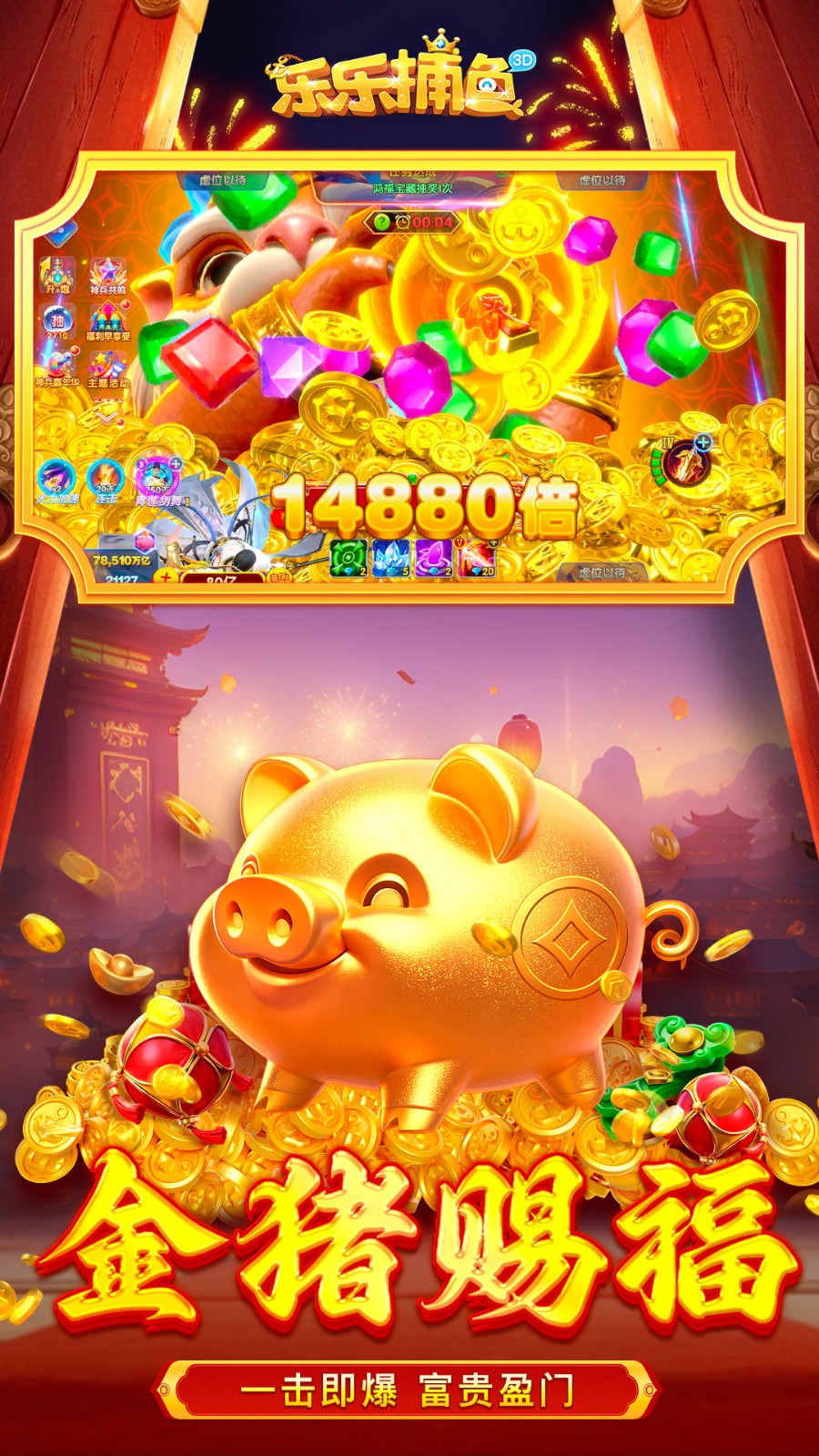 4、设有“机甲狂潮”“海域寻宝”等特色渔场和限时活动,不断更新的游戏内容保持新鲜感。玩家可参与八仙赐福、欢乐扭蛋等主题活动,完成任务领取金币雨、高爆道具等奖励。