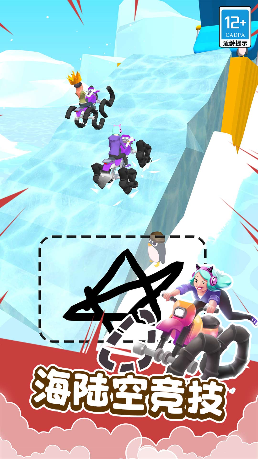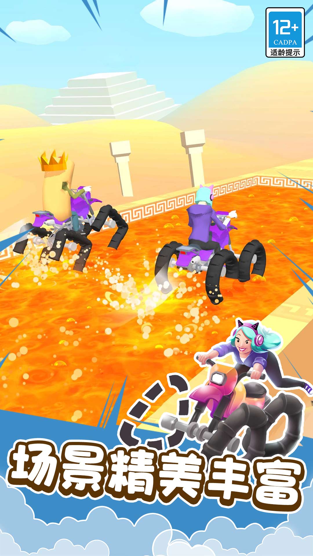 2、赛道中设有洞口穿越、保龄球障碍、大摆锤、跳板、弹射器等趣味机关,考验反应与操作精度。