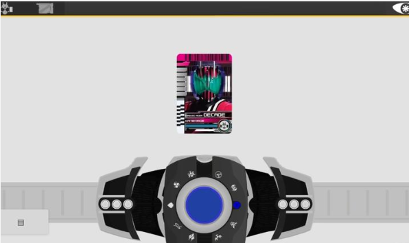 2、启动机关,出现骑士卡,左右滑动这个小窗口,可查看到电视剧中出现的所有骑士卡,选择一张进行变身。