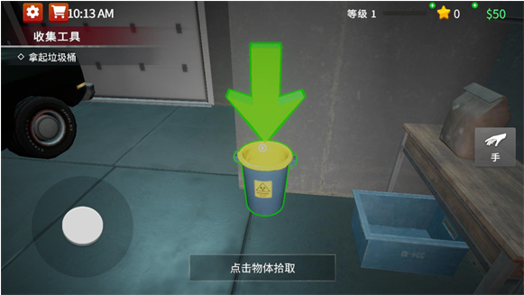 2、选好后进入游戏需要先收集物品,需要收集的物品会在左侧显示,靠近后会有绿色箭头标注。