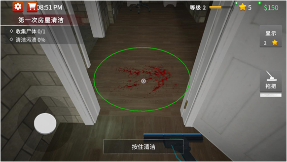 5、当玩家遇到污渍后会标明清理方式,使用对应的工具就可以清理污渍。