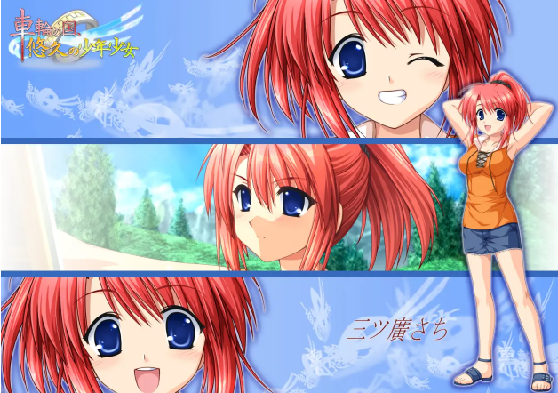 《车轮之国,悠久的少年少女》(车轮の国、悠久の少年少女)是あかべぇそふとつぅ提供,在2007年1月26日发行的正剧田园类冒险文字游戏。