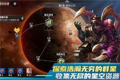 1、游戏融合星际探索、基地建设、舰队养成、科技研发、联盟外交五大模块,玩家需统筹资源采集、建筑升级与英雄培养,打造专属太空帝国。