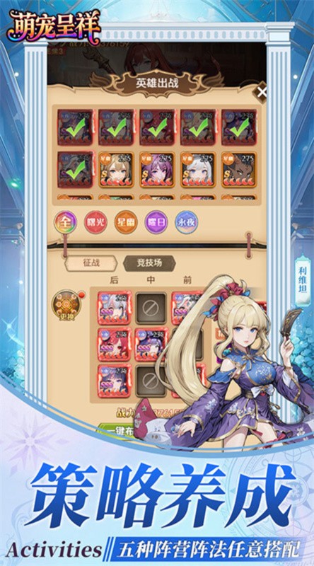 3、支持离线挂机自动战斗,解放双手;同时PVP竞技场、公会战、试炼之塔等玩法需手动操作与阵容搭配,兼顾休闲与深度,适合各类玩家节奏。