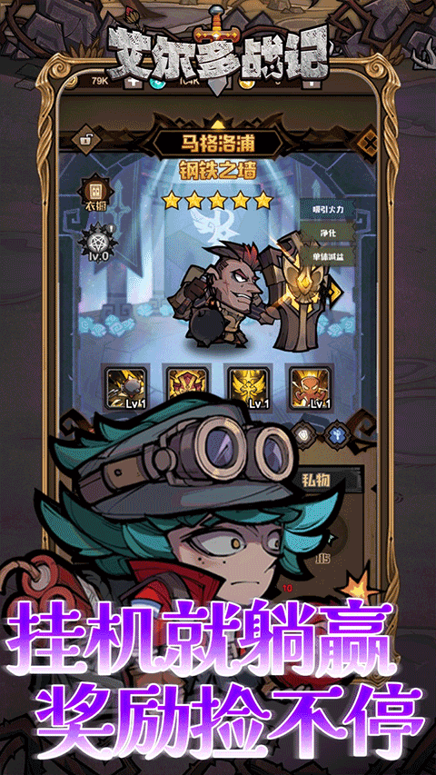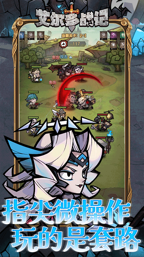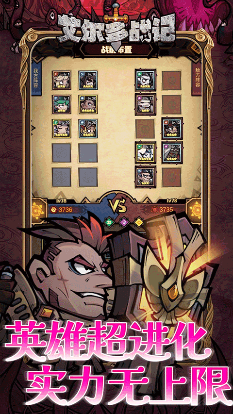 艾尔多战记是一款融合荒诞哥特画风与策略放置玩法的竖屏卡牌手游,玩家将化身冒险家,率领六大阵营的英雄踏上拯救被邪恶古神侵蚀的艾尔多大陆的征程。游戏以PVE推图为核心,结合Roguelike、PVP竞技与深度角色养成,通过战前布阵、羁绊搭配与英雄技能组合实现策略制胜,支持挂机获取资源与一键扫荡,兼顾休闲与硬核体验。