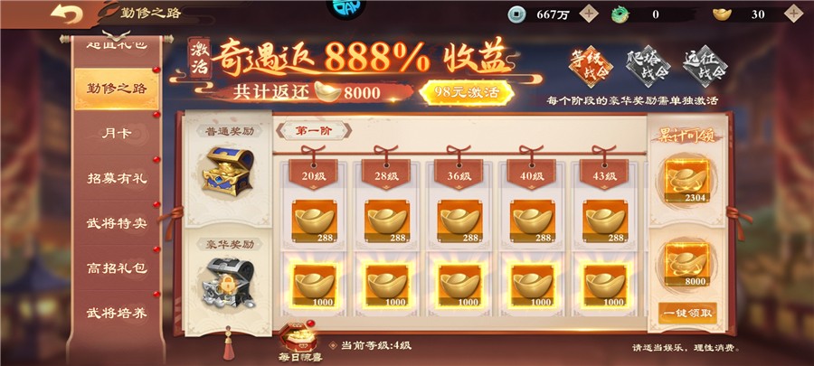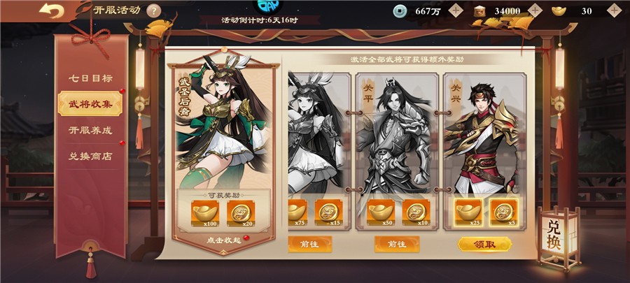 铜钱:优先升级民户与商铺(府邸建筑),稳定产出;挑战经典战役(周一/四/日开放)获取额外奖励。