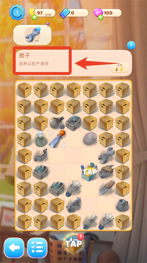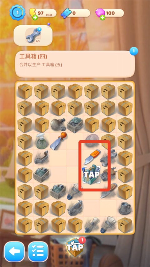 开始合并:在游戏界面中,将两个相同等级的家具或装饰品拖动至一起,即可合并生成更高级别的物品(如两个“普通沙发”合并为“舒适沙发”)。