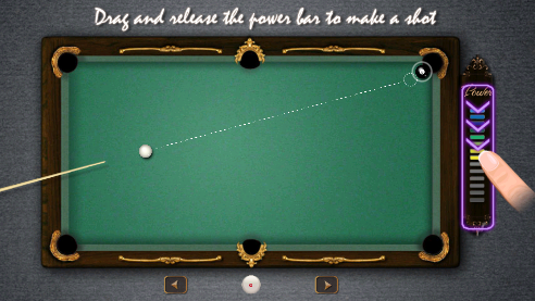 1、单人模式开局可进行个人练习8球或者9球,此模式没有时间限制,可拖动球杆瞄准白球来击打并让白球与其他颜色的球打进球袋;屏幕下方左右箭头按钮可以进行微调击打白球与其他球碰撞时的折善点以更准确的把球打进球袋,个人模式击打进一 个其他颜色的球开始计算得分;若把白球打进球袋后为自由球,可以任意摆放白色球的位置, 知道把所有白色球除外的都打进球袋此局游戏结束。
