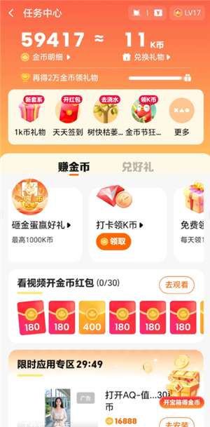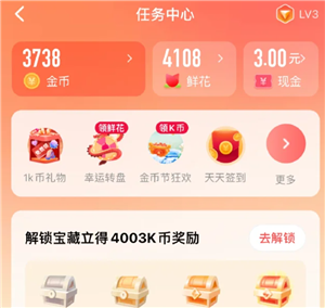 在全民K歌挣金币换礼物送歌友,买行头。登录全民K歌,去任务界面有天天签到,打卡领K币,每天1K币礼物,勋章礼包等,很多金币奖励等你来领。