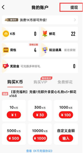 全民K歌的K币主要通过充值购买获得,还有就是参与平台活动等方式也可以获取K币。