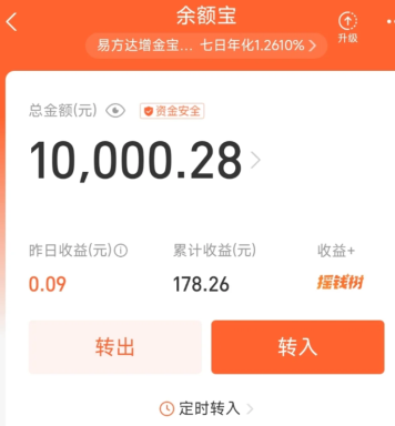 将1万元存入余额宝,一天的收益约为0.28元。该收益基于余额宝对接的货币基金最新数据计算得出,具体金额会随市场利率波动而每日变化。