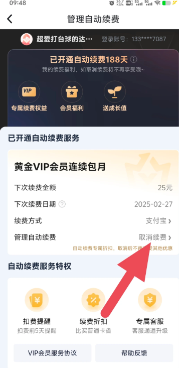 3,进入之后点击续费管理;(如何找不到,在我的-往下拉 帮助与反馈 里面有续费管理)