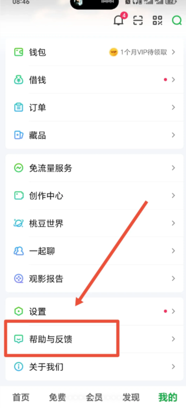 1, 打开爱奇艺APP,右下角“我的”页面,找到“帮助与反馈”;