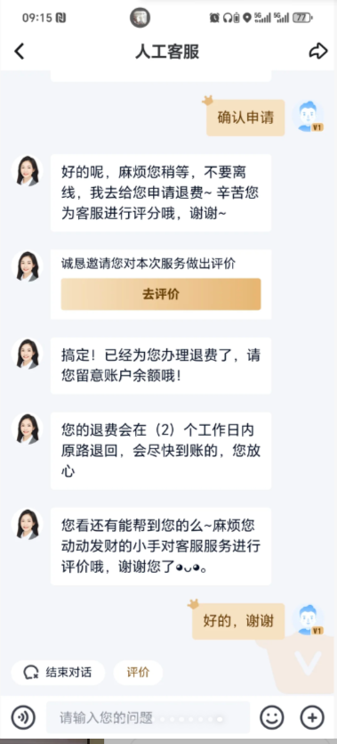 3.客服一般会核实情况,符合条件的话,退款会在1-3个工作日退回原支付账户。(我的是当天就到账啦!)