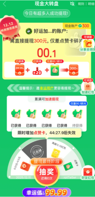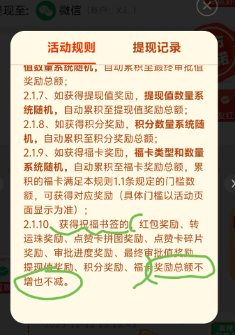 提现值后面还有积分,福卡,祝福书签, 而且拿到祝福书签等于0不累计任何奖励。