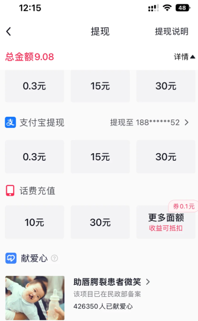 有支付宝提现的,目前抖音极速版提现有支付宝,微信以及银行卡,如果没有的话,你直接去联系官方客服,让客服给你多加一个支付宝提现就行了,我前两天刚找。