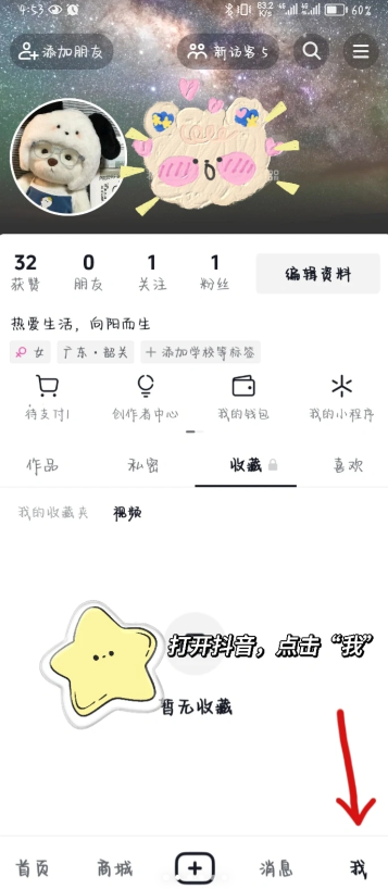 1,打开抖音,点击“我”;