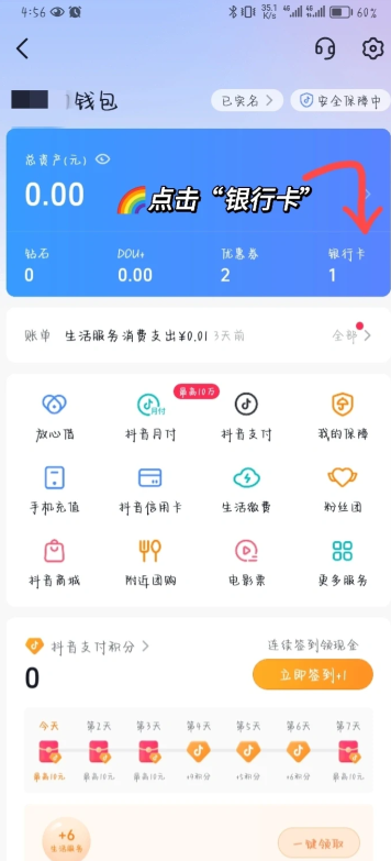 3,点击进入,找到银行卡