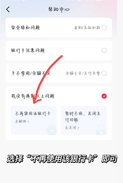 5,点击“不再使用该银行卡”即可