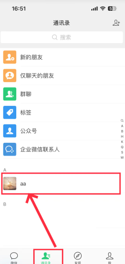 1.微信点击底部“通讯录”,然后点击联系人。