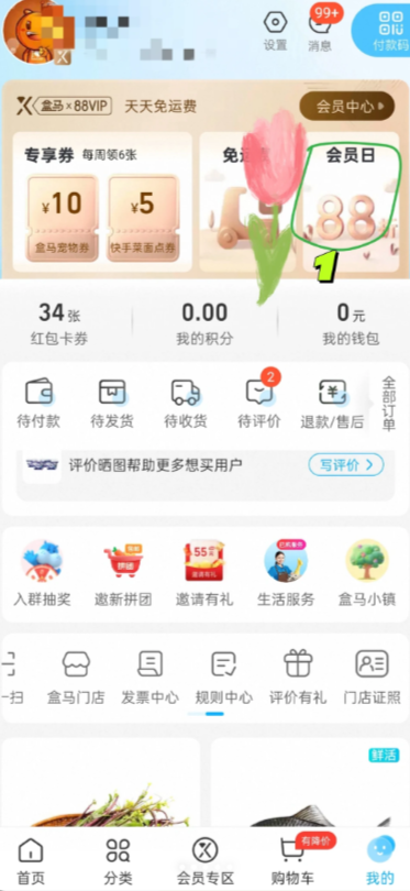 盒马app的会员日是可以打88折的,价格相比平时还是优惠不少的,但很多小伙伴想要修改自己的会员日,但是不清楚在哪个位置修改,下面就和小编一起来看看具体的修改教程。