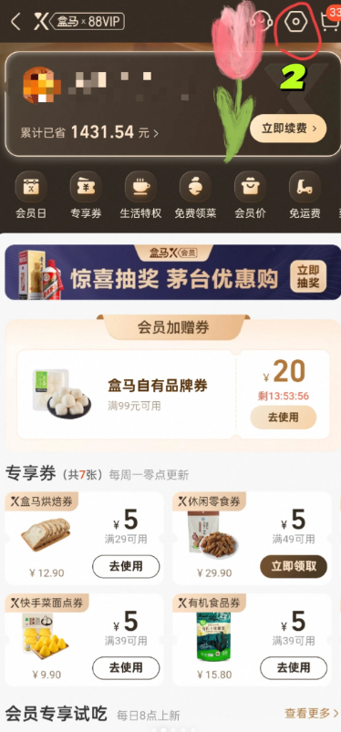 盒马会员日可在周一至周四之间修改,每年仅能修改一次,下面是修改方法。