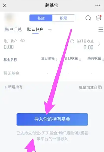 进入下一页,点击导入你的基金持有,即可同步支付宝。