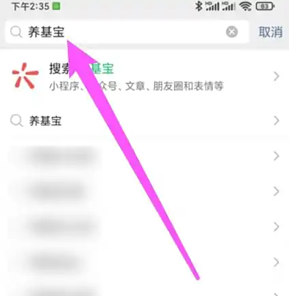 进入微信搜索页面,输入养基宝,点击搜索。