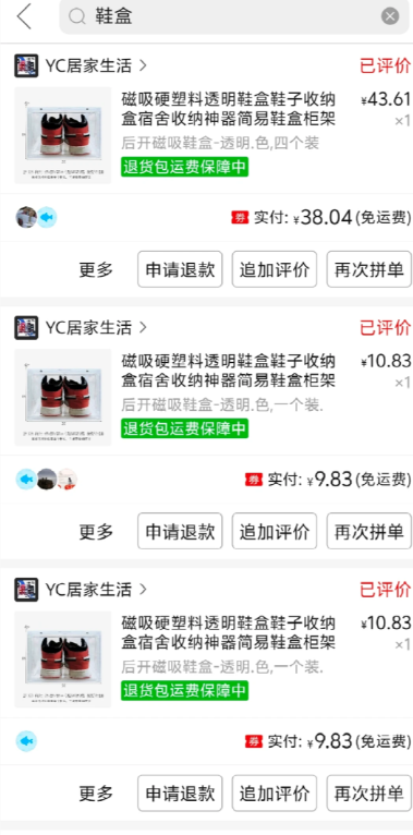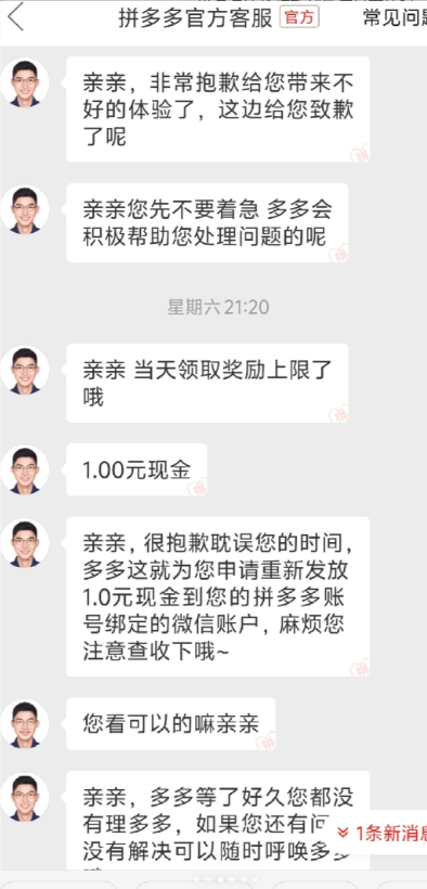 我买了p2这种鞋盒一共14个订单(为了使用优惠券),每个订单都有评价微信打款一元的标志,我就每单都拍照写了评价,结果只收到三笔一块钱的微信打款!联系了客服,客服推三阻四的,一下说系统当天上限三笔,一下说系统自动判定无法返现,问为什么判定无法返现也不正面回答。