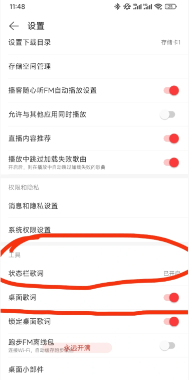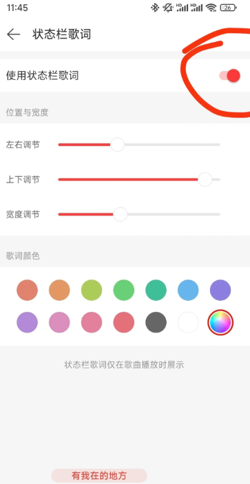 2,状态栏歌词,桌面歌词,可二选一
