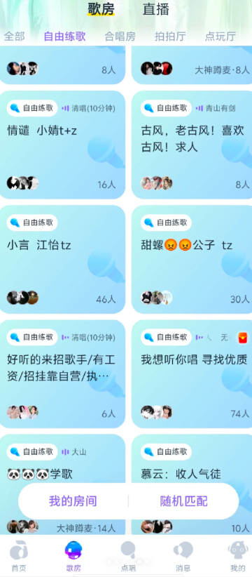 歌房也很多唱歌的,可以根据房名进房间唱歌。图5