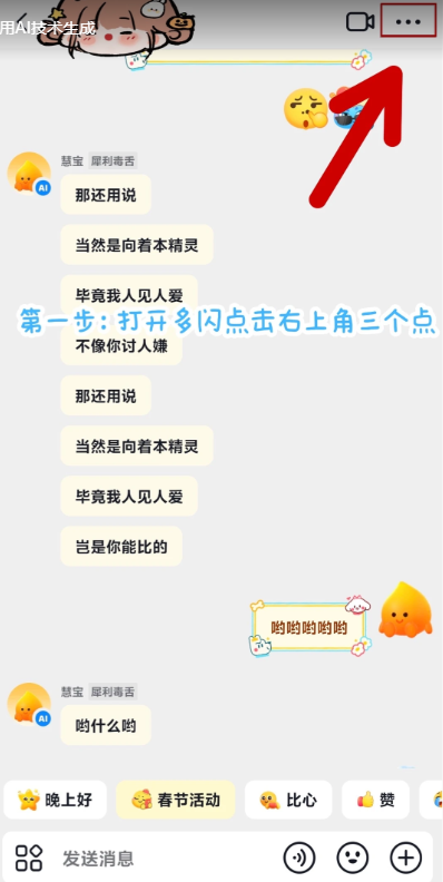 1,打开多闪聊天页,点击右上角三点进入设置;