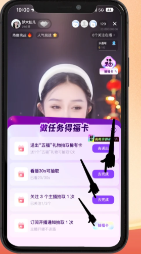 玩法2: 五福直播间互动增加抽卡机会