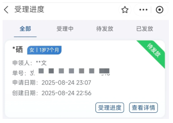 8月24日支付宝申请的育儿补贴,10月1日的时候支付宝弹出消息提示已经审核通过,我进去里面看了一下情况,状态确实是待发放了,受理进度进去看到的是9月30日审核通过,但到今天为止,我没有收到过短信噢。